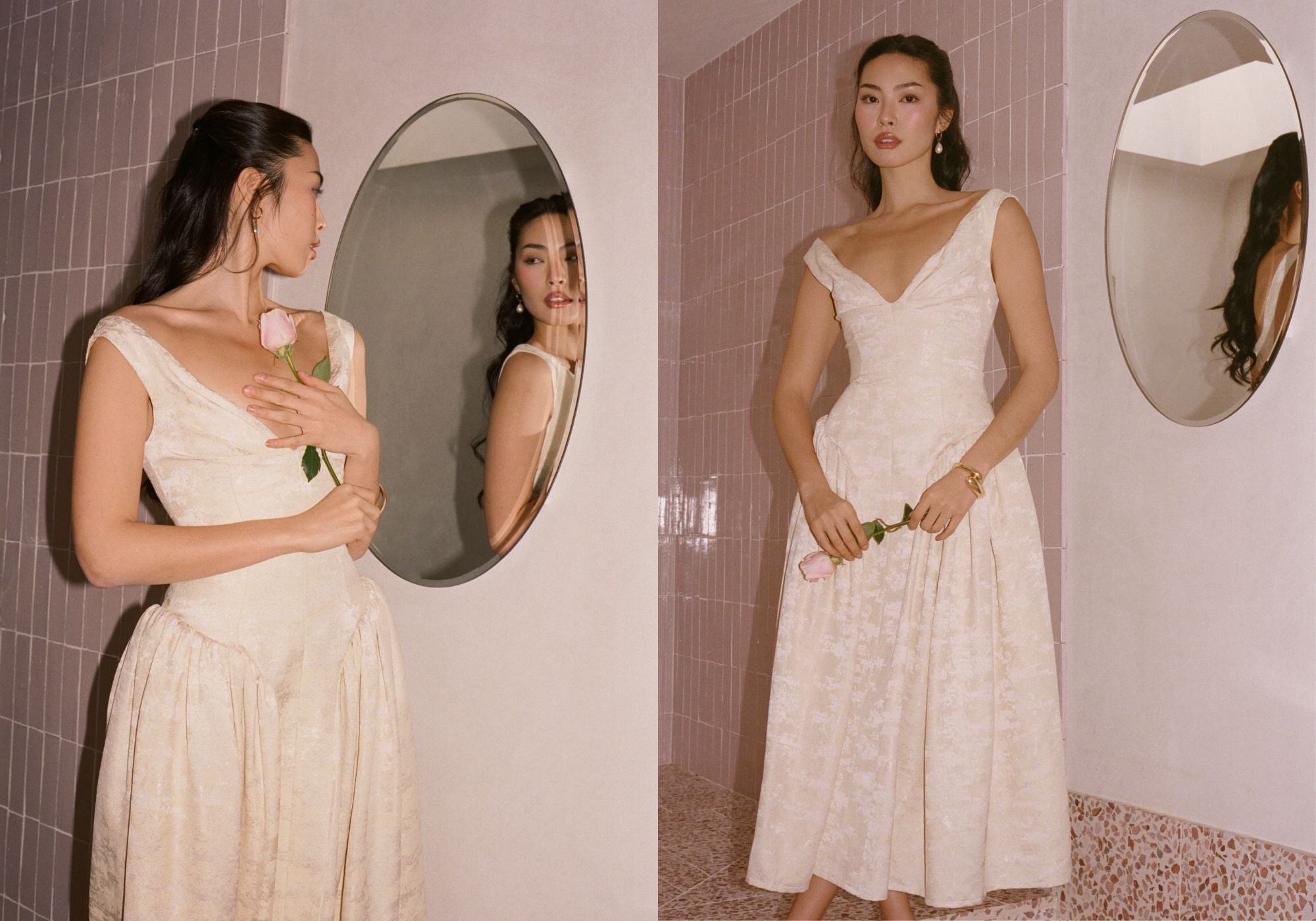 Soft pinks and yellows close the story with a dreamy, romantic finish. Satin fabrics catch the light with a gentle glow, while pastel tones feel playful, sweet, and undeniably feminine. Airy sundresses and flirtatious silhouettes evoke daydreams, whispered secrets, and late-night plans that turn into early mornings. It’s sweetness layered with intention — delicate, charming, and just a little mysterious.